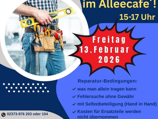 Das Repaircafé öffnet wieder am Freitag, 13.02.2026, von 15 bis 17 Uhr jetzt immer im Alleecafé, Winschotener Straße 2-4…