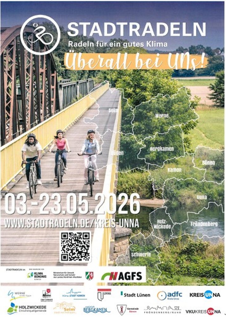 Vom 3. bis zum 23. Mai 2026 beteiligen sich auch in diesem Jahr wieder alle zehn kreisangehörigen Kommunen im Kreis Unna an der Aktion Stadtradeln vom Klimabündnis. Auch Fröndenberg/Ruhr ist mit dabei.