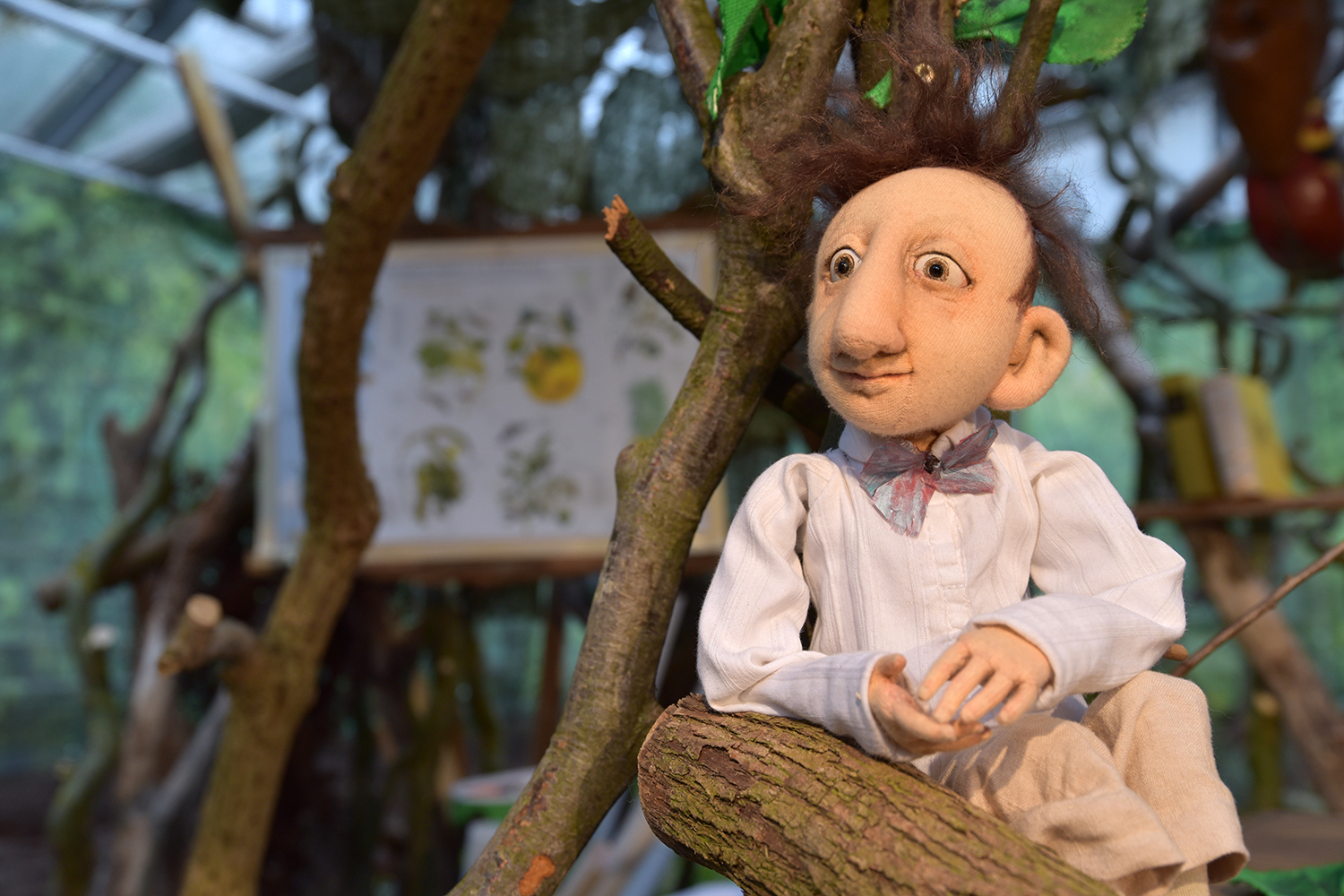 Die Puppen und Figuren vermischen sich eindrucksvoll mit der realen Pflanzenwelt und ergeben so eine zauberhafte Theaterkulisse, die untermalt wird von einer fantasievollen Klangcollage.