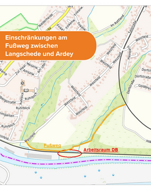 In Höhe der Ortsteile Langschede und Ardey wird hierbei ein bahnbegleitender Entwässerungsgraben nachgeschachtet und ein bestehender Durchlass des Ardeyer Bachs unter den Bahngleisen saniert.