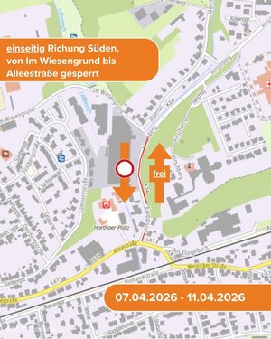 Fahrtrichtung Norden von Im Wiesengrund und Alleestraße gesperrt