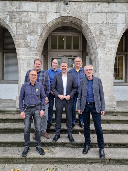 vlnr. vorne Peter Holterhöfer Teamleiter Finanzen, Bürgermeister Dirk Weise, Kämmerer Günter Freck, hinten: Stefan Betzinger stellv. Fachbereichsleiter 3, Ole Strathoff FBL 1, Matthias Weischer FBL 2.