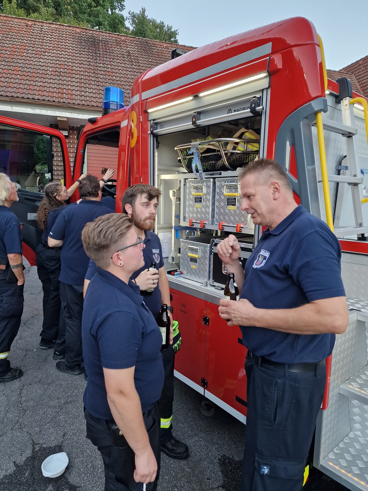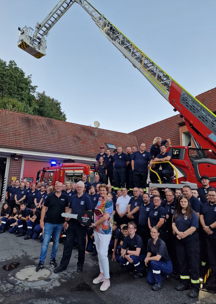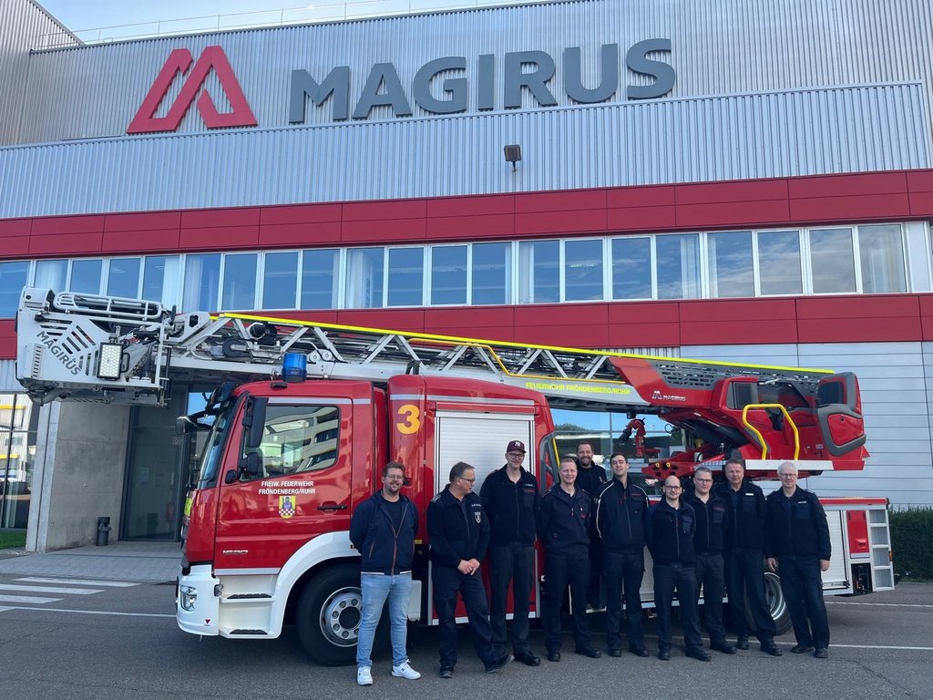 Am 16.09.2025 fuhr die Wehrleitung mit einem Vertreter der Verwaltung nach Ulm zur Endabnahme beim Hersteller. Dort folgte am 17. und 18. September 2025 die Einweisung der ersten 6 Drehleitermaschinisten aus verschiedenen Löschgruppen sowie Dieter Blotenberg von der Wehrleitung. Diese werden nun als Multiplikatoren in den kommenden Wochen weitere Kameradinnen und Kameraden auf dem neuen DLK schulen.