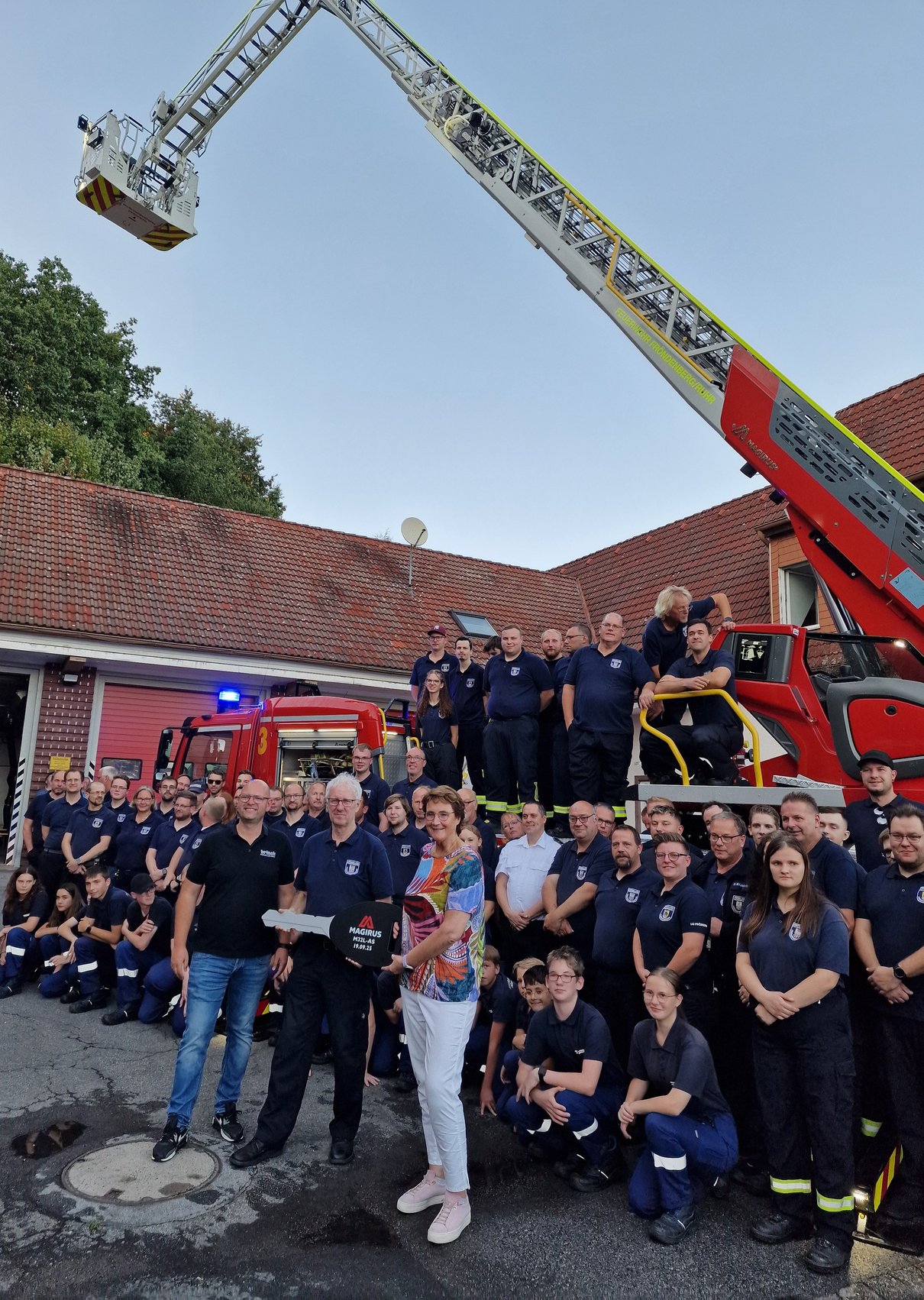 Freiwillige Feuerwehr Fröndenberg bereitet neuer Drehleiter spektakulären Empfang