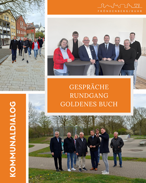 Bei einem gemeinsamen Frühstück im Rathaus tauschten sich die Anwesenden zu unterschiedlichen Themen aus. Dabei besprachen sie in offener Atmosphäre aktuelle Herausforderungen wie laufende Fröndenberger Projekte zum Hochwasserschutz, den Neubau der Kita sowie Optimierung und Ausbau der Radwege. Auch die Entwicklung der kommunalen Zusammenarbeit wurden besprochen. Im Anschluss trug sich Heinrich Böckelühr in das Goldene Buch der Stadt ein. Darauf folgte ein intensiver Austausch mit den Fraktionsvorsitzenden des Rates, bei dem kommunalpolitische Themen und Perspektiven diskutiert wurden.