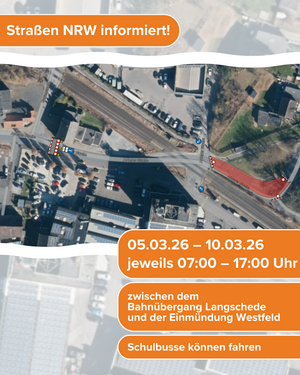 Lage der Sperrung: zwischen dem Bahnübergang Langschede und der Einmündung Westfeld