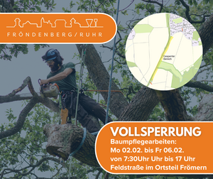 lässt die Stadt Fröndenberg/Ruhr erforderliche Pflegearbeiten an den Bäumen und Sträuchern an der Feldstraße im Ortsteil Frömern,